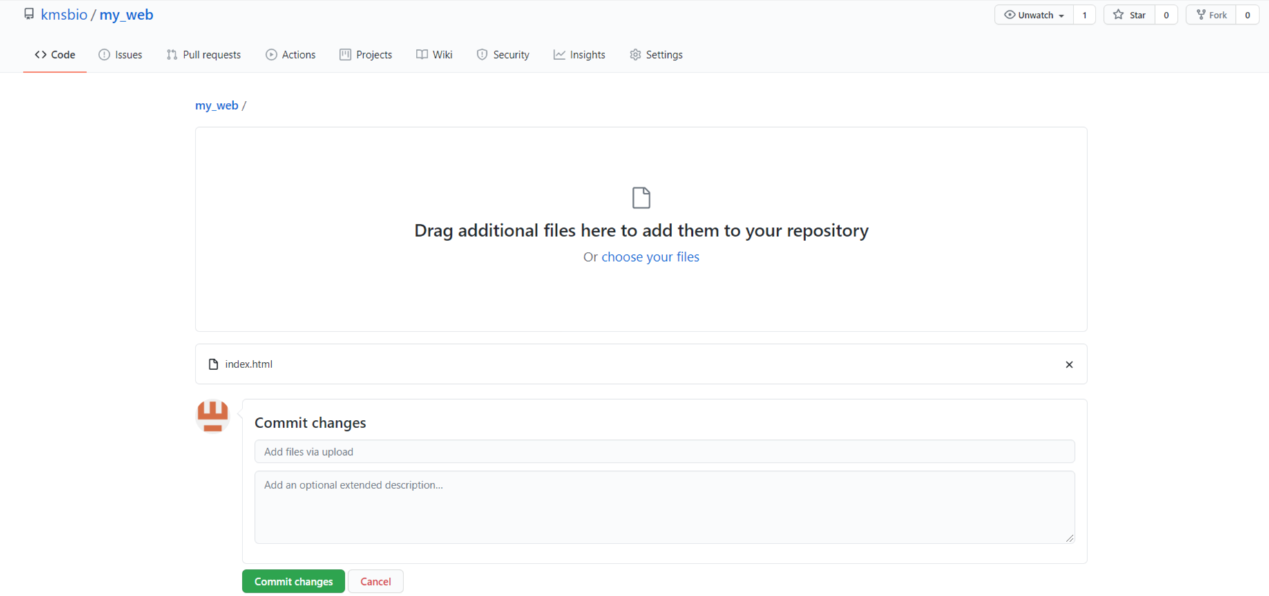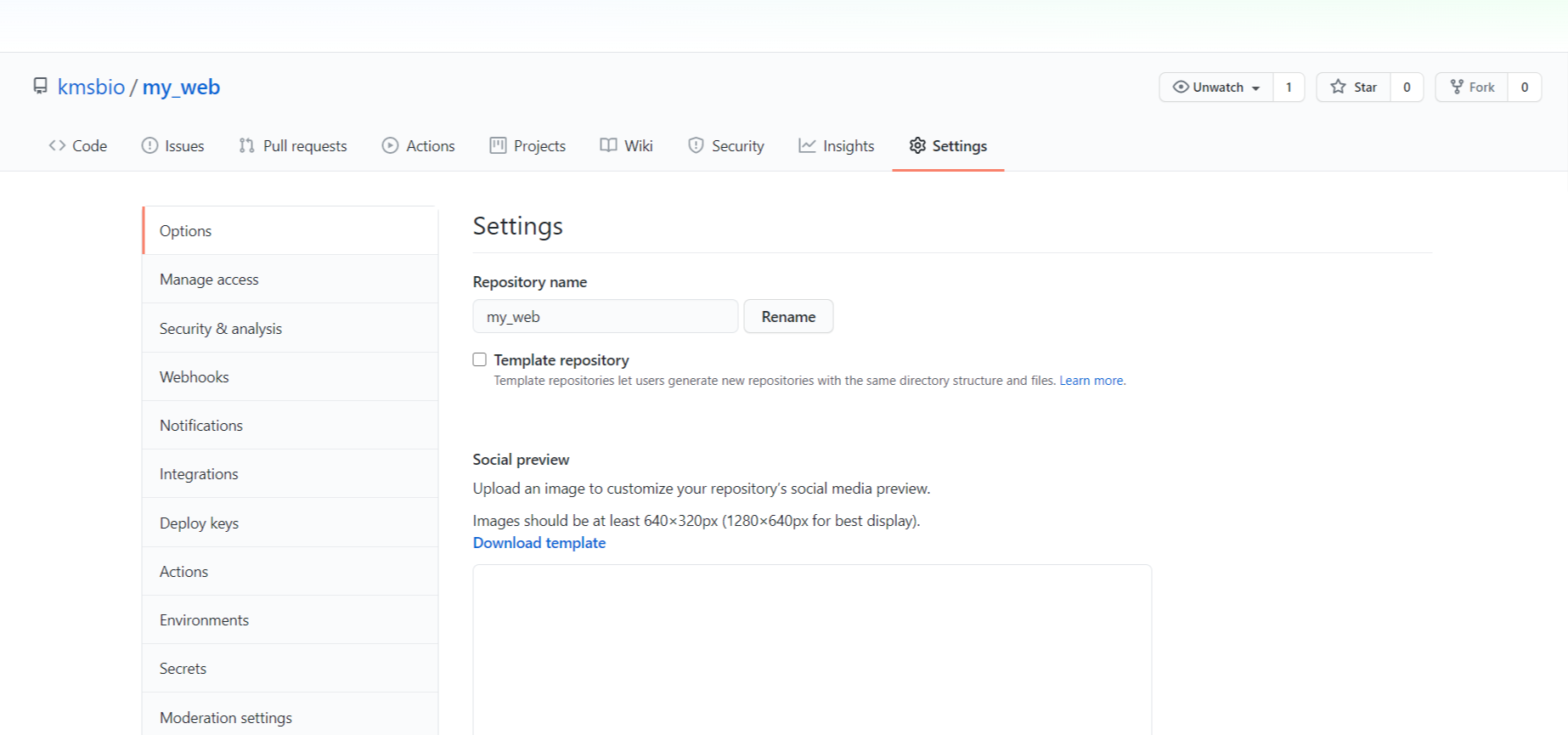 4. kmsbio.github.io/my_web이라는 사이트를 제작하려고 한다.
