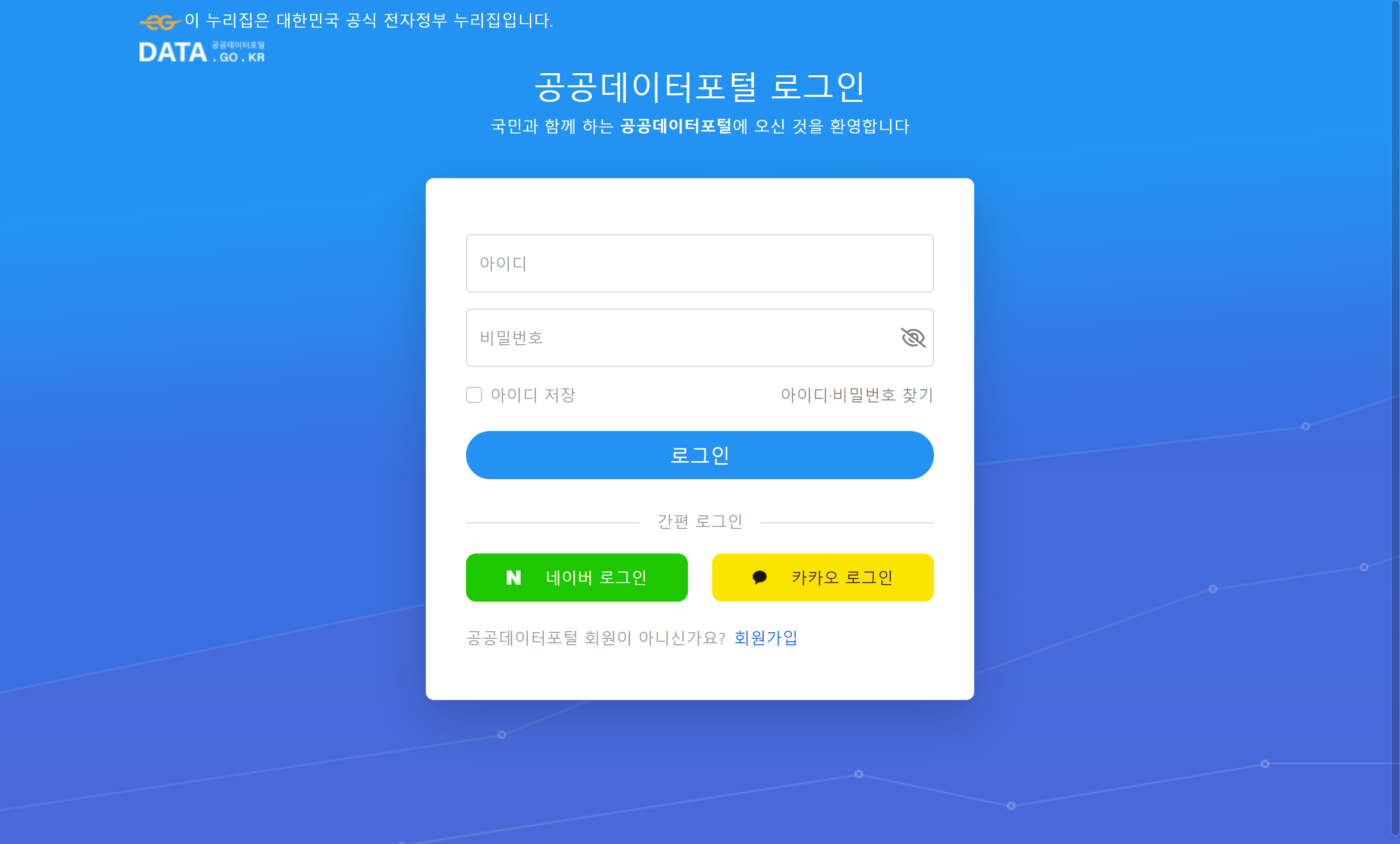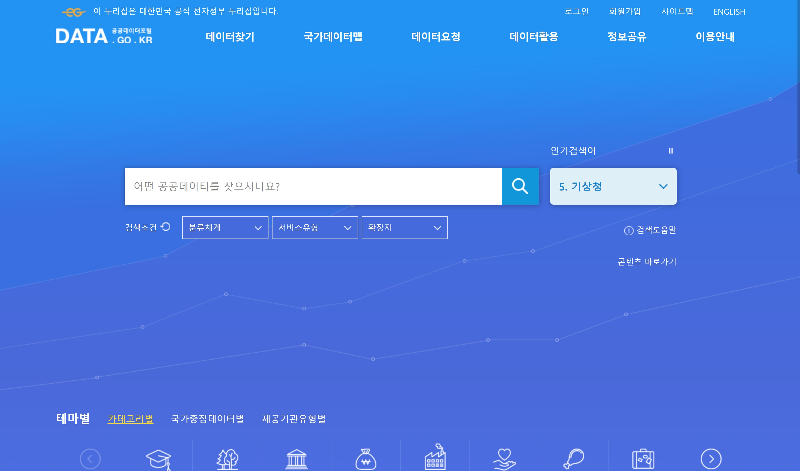 1. 우선 위에 있는 링크로 공공데이터 포털을 접속합니다.
