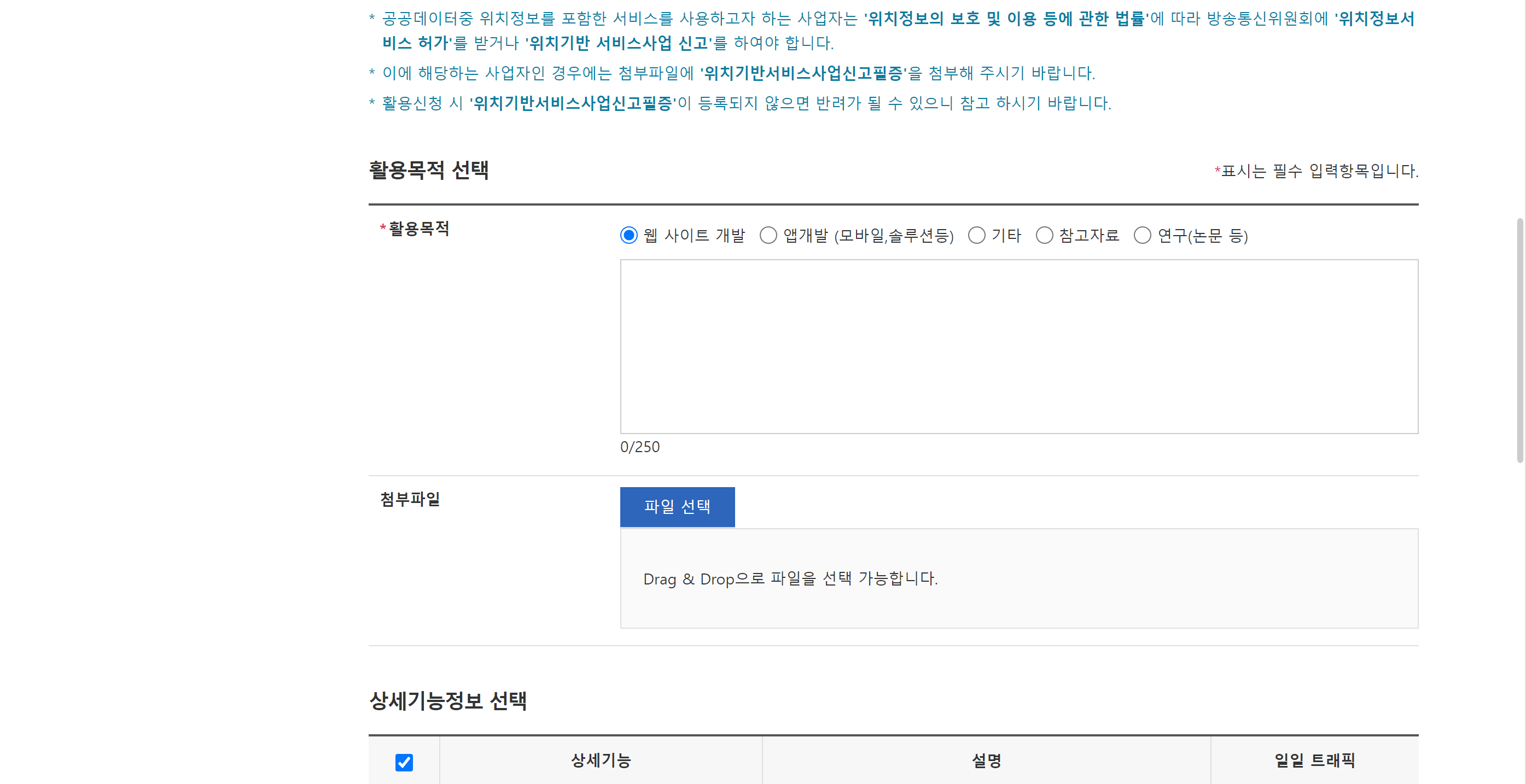 5. 활용 목적 등을 선택하여 신청하도록 합니다.