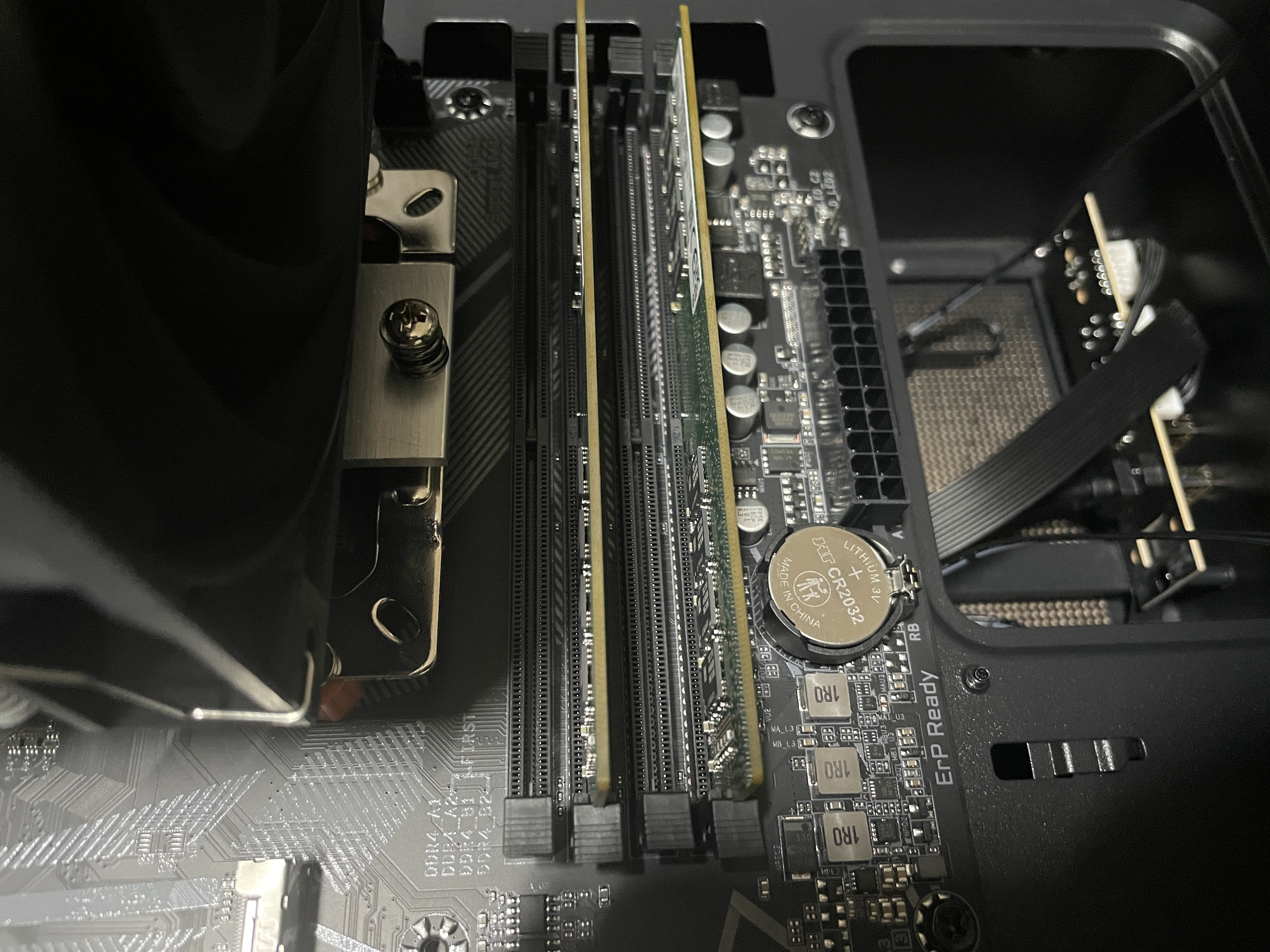 램은 해당위치에 장착하면 됩니다. DDR4 같은 경우에는 딸깍 소리가 나면 장착이 된 것입니다. 램 같은 경우는 여러 개를 끼울 때 순서가 있습니다. 2개를 꽂는 경우 2번, 4번에 꽂으면 됩니다. 인식을 못 하는 경우 다른 슬롯에 꽂도록 합니다.