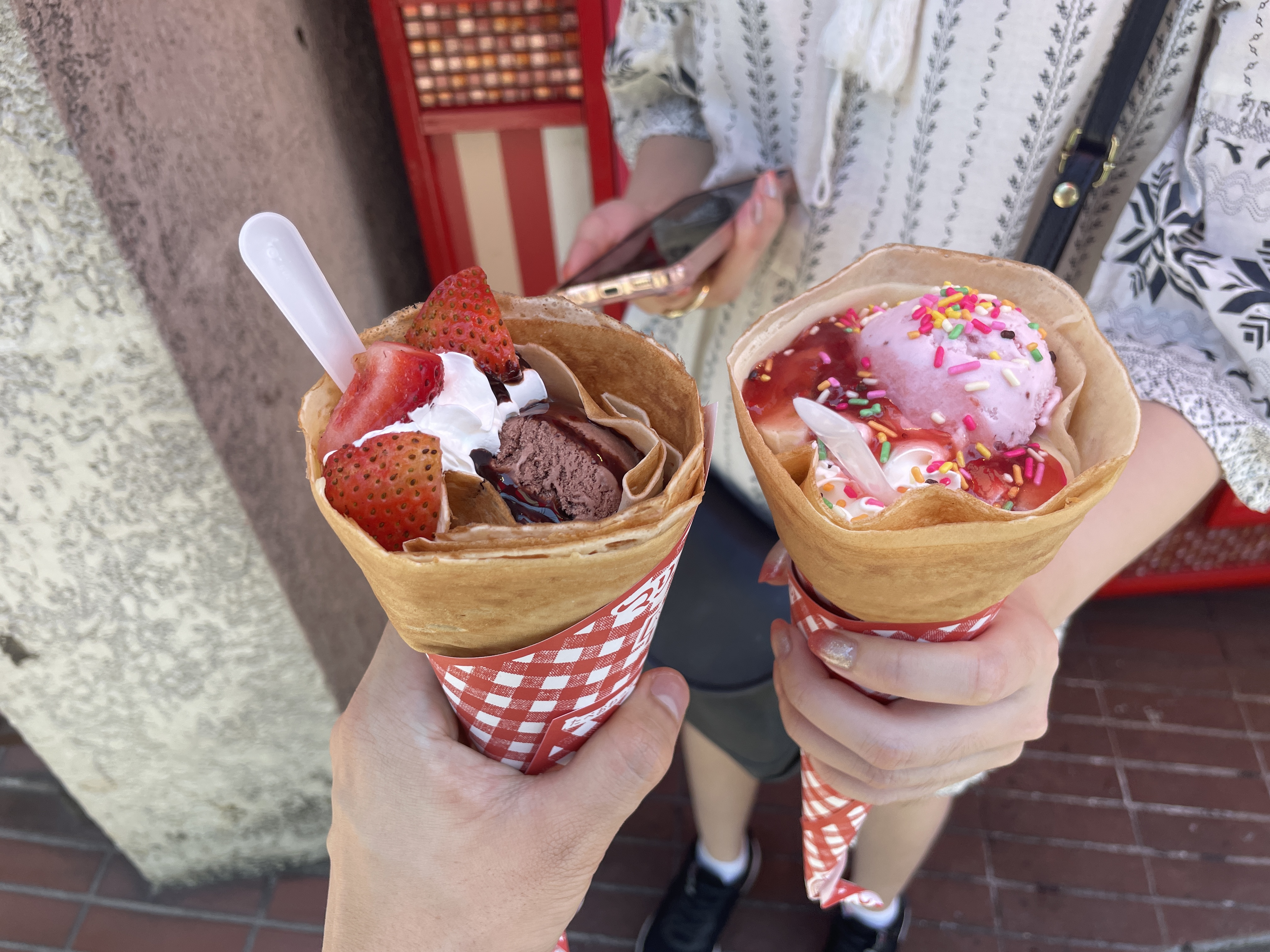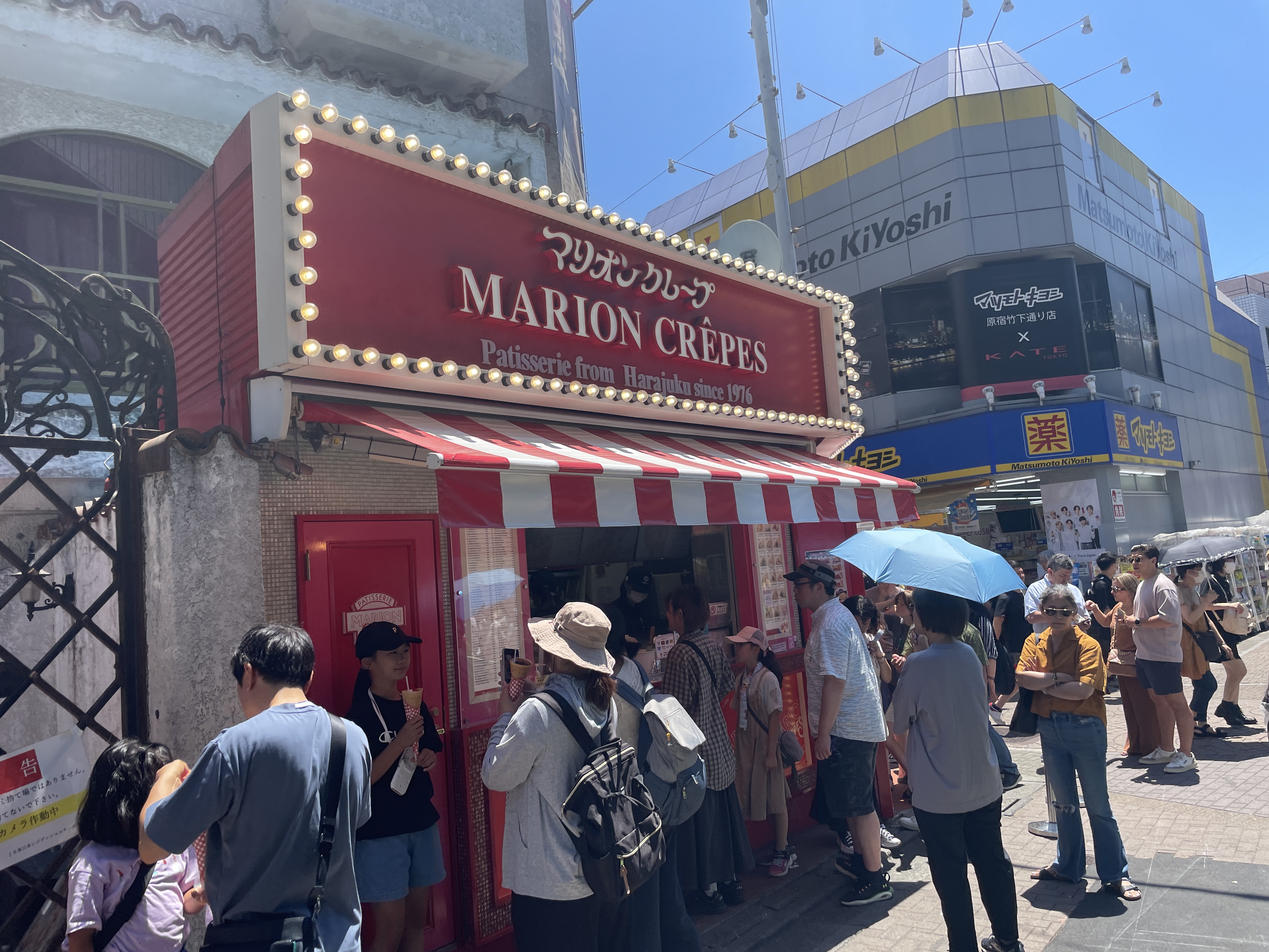 타케시카 거리 안쪽으로 가면 많은 크레이프 가게가 있는데 저희는 마리온 크레이프라는 가게를 갔습니다. 원래 크레이프 레시피에다가 하라주쿠 풍 크레이프를 고안한 가게라고 합니다. 사람들이 많이 모이는 가게인 만큼 맛있게 먹었습니다.