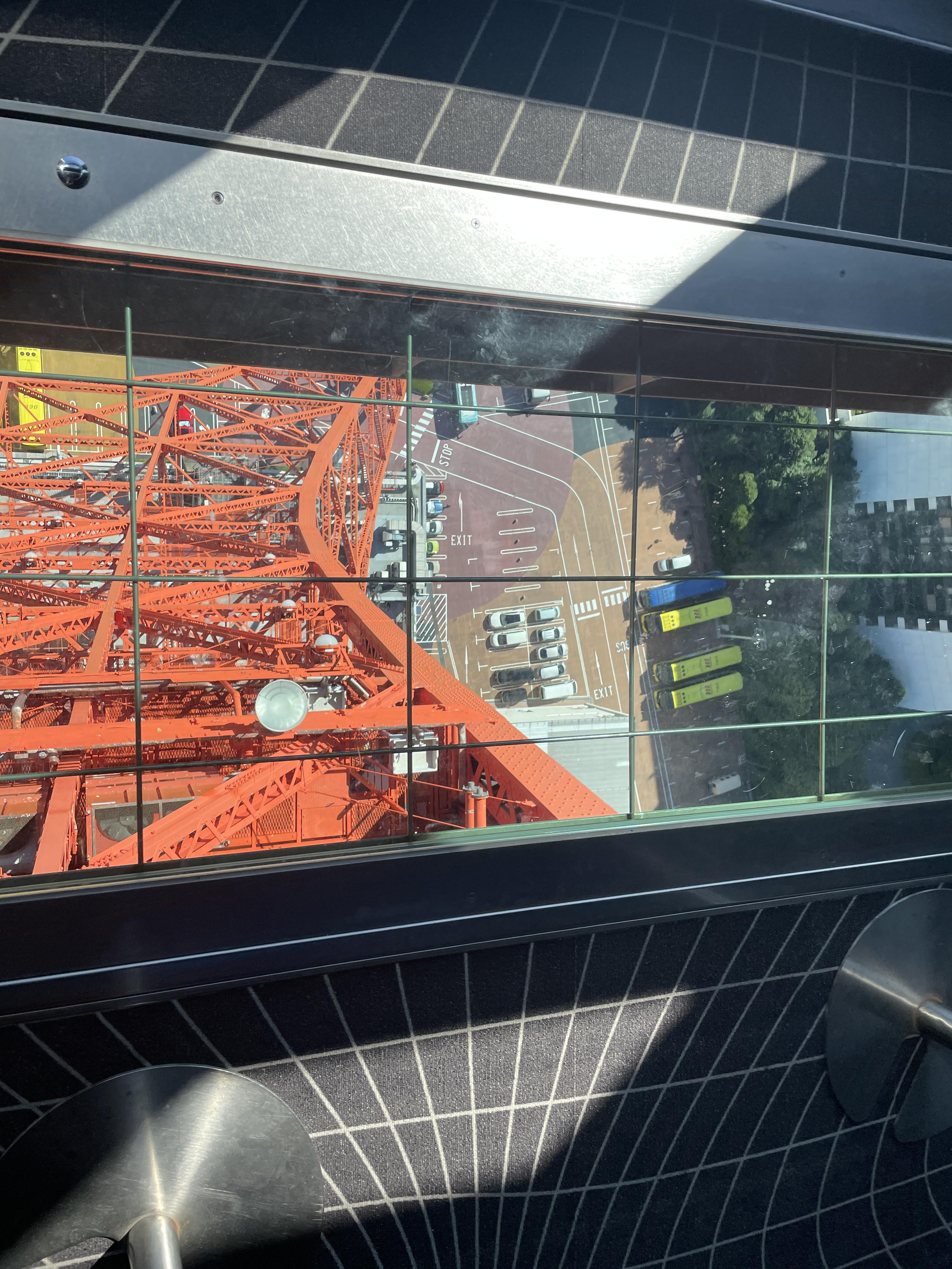 날씨가 더울 때는 역시 실내가 최고입니다. 도쿄타워안에서 경치를 구경하며 사진을 찍었습니다. 전망대는 위층 아래층으로 되어있었습니다. 아래층에서는 바로 아래를 볼 수 있는 유리또한 있었습니다.