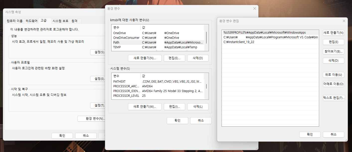 여기서 중요한 것은 파이썬의 명령어 집합과 오라클 클라이언트의 명령어 집합이 같아야 합니다. (32bit - 32bit, 64bit - 64bit)
