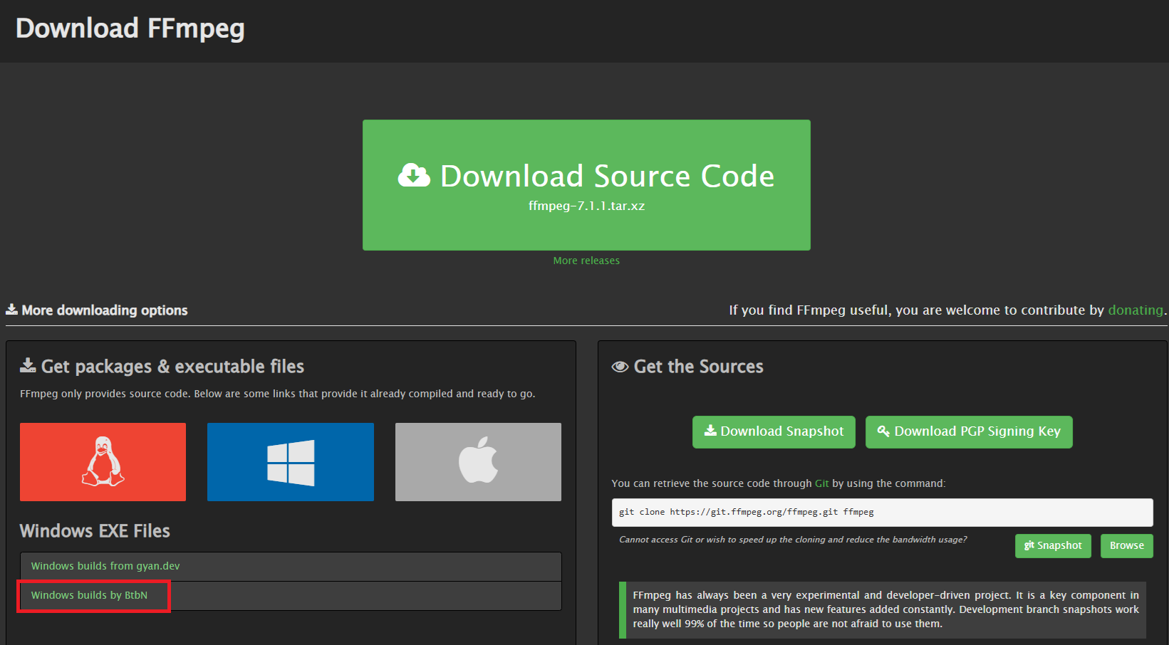 Converting video and audio has never been so easy. $ ffmpeg -i input.mp4 output.avi News September 30th, 2024, FFmpeg 7.1 "Péter" FFmpeg 7.1 "Péter", a new major release, is now available! A full list of changes can be found in the release changelo