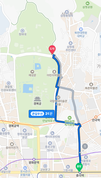 - 경북궁역 3번출구 역에서 효자동 삼거리로 이동하는 방법 (1711, 7022, 1020, 7212) (효자동으로 가는 방법)