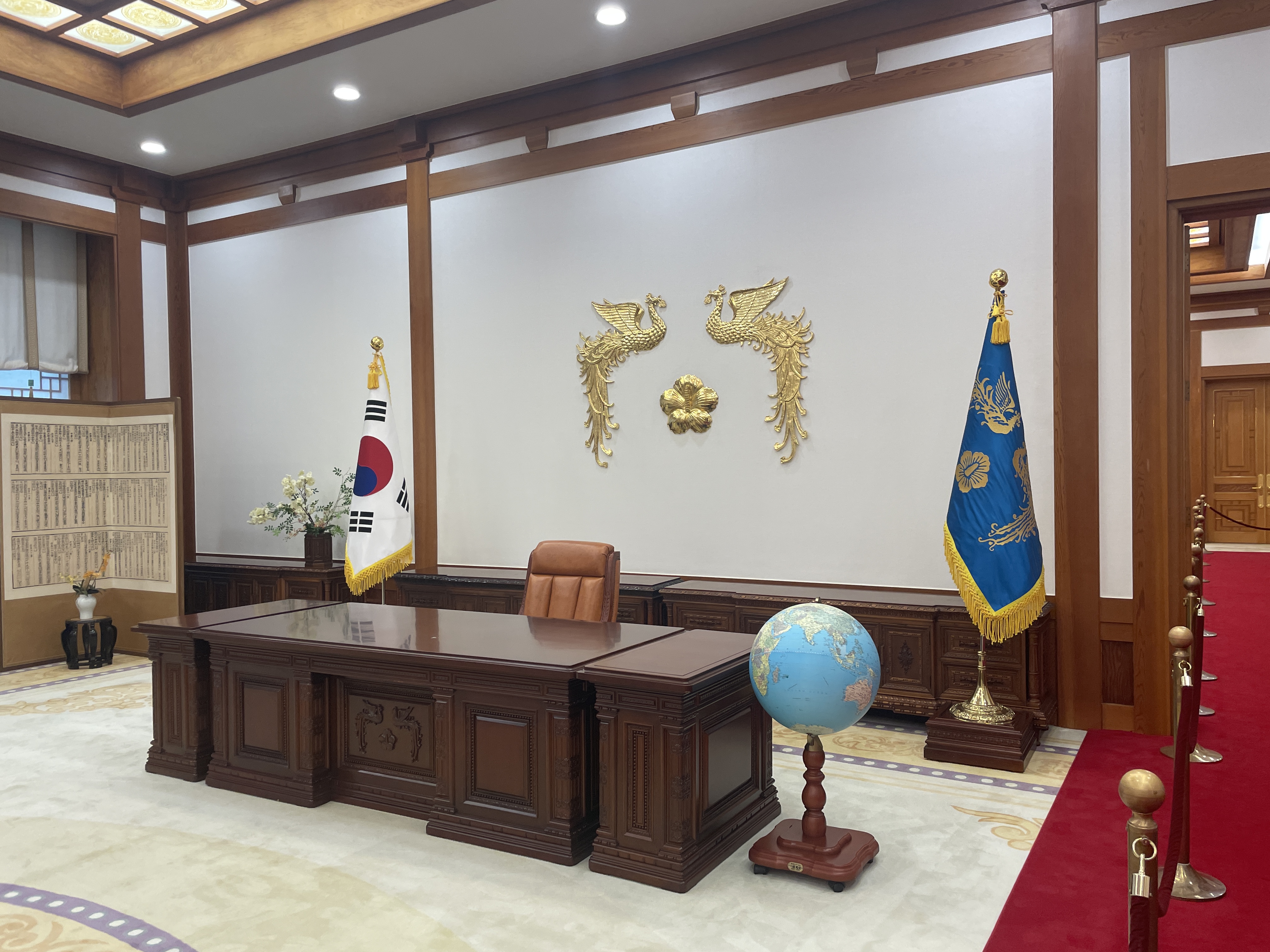그리고 가장 놀라웠던 점은 뉴스에서나 자주 보던 곳을 눈으로 직접 보니까 신선했습니다. 이곳은 대통령의 집무실로 해당 위치에서 회의 및 업무를 보았다고 합니다. 개인적으로 대통령석에서 앉아볼 기회가 있으면 앉아보고 싶습니다.