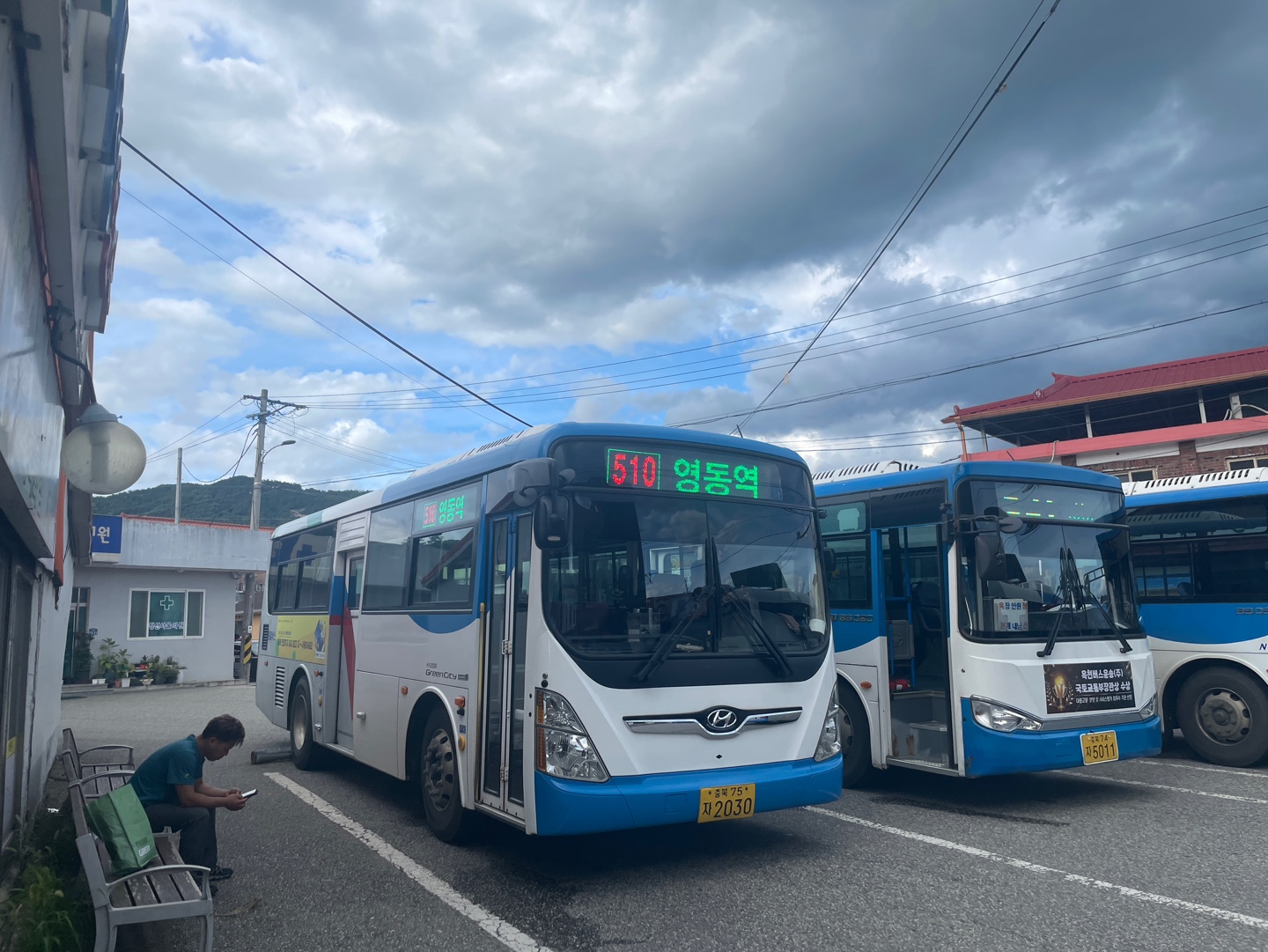 근처에서 저녁을 먹고 정보를 찾던 중 김천까지는 어떻게든 갈 수 있다는 것을 발견하였고 주변에서 놀다가 매곡까지 가서 김천까지 가려고 하였습니다. 여담으로 매곡까지는 대부분 영동 농어촌 버스가 다닙니다. (매곡면 경유)