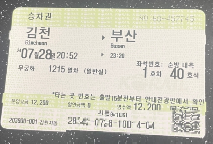 남은 거리는 무궁화호를 타고 이동하였습니다.