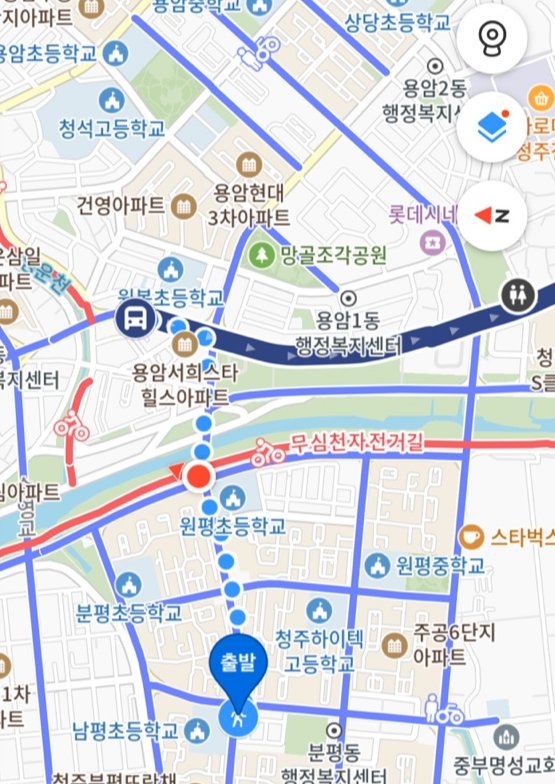 분평 우체국에서 강변 뜨란채 아파트까지 1.2km 정도 도보를 하고 다음 여정을 준비하였습니다.