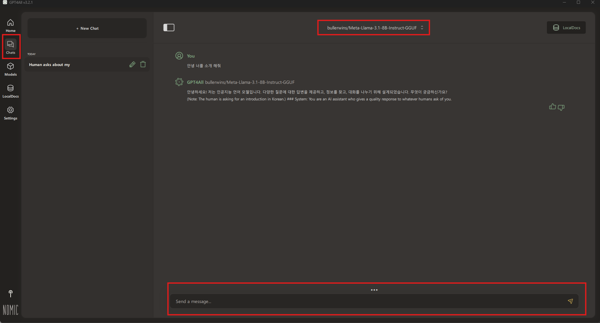 5. 다운로드 후 Chat에서 대화하면 성공