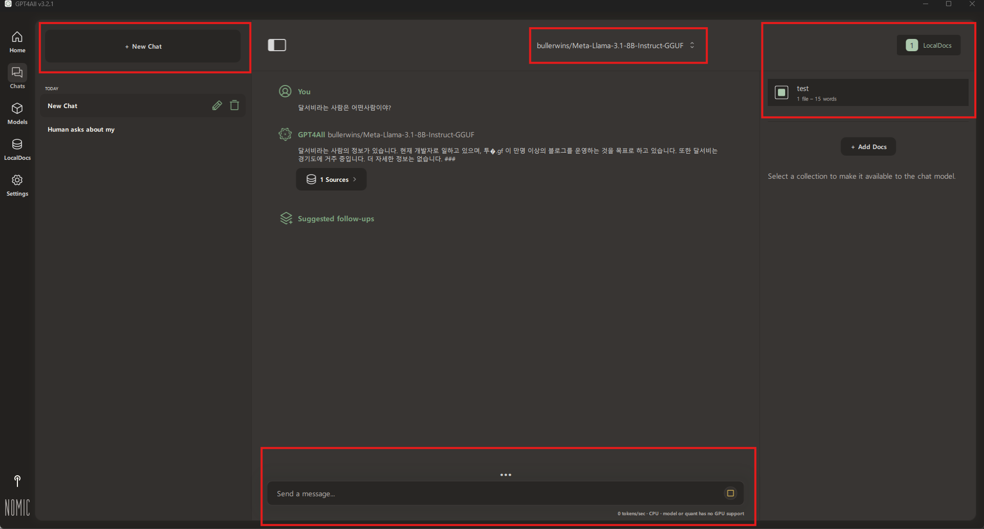 이번에는 Llama 3.1-8b 모델을 로컬에서 구축하고 실행하는 방법을 알아보았습니다. 추후 gpt4all을 이용한 ai 서버를 만들어 보려고 합니다. 서버를 만든 후 추가로 게시글 작성을 하도록 하겠습니다.