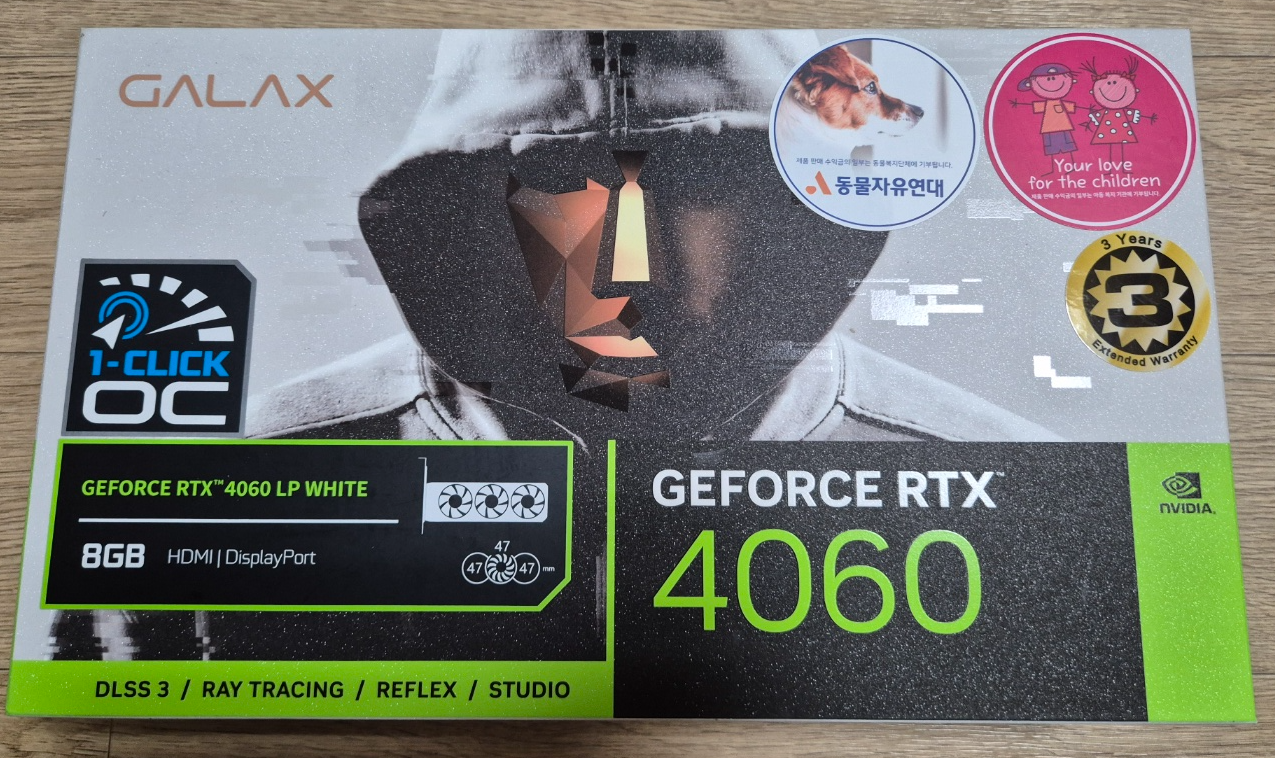 | GPU | 갤럭시 GALAX 지포스 RTX 4060 WHITE OC D6 8GB LP |