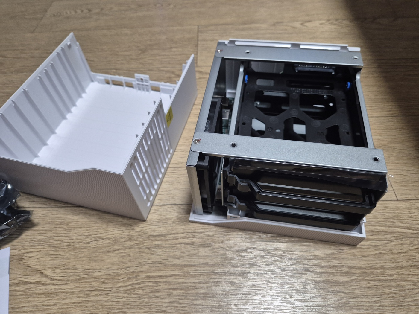 우선 하드에 1자 나사를 빼면 상단 뚜껑을 딸 수 있습니다. 열면 프레임이 나오고 디스크를 넣을 수 있습니다.