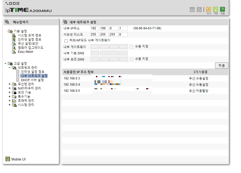 또한 MAC 주소는 기기에 쓰여 있거나 공유기에서 확인하시면 됩니다.