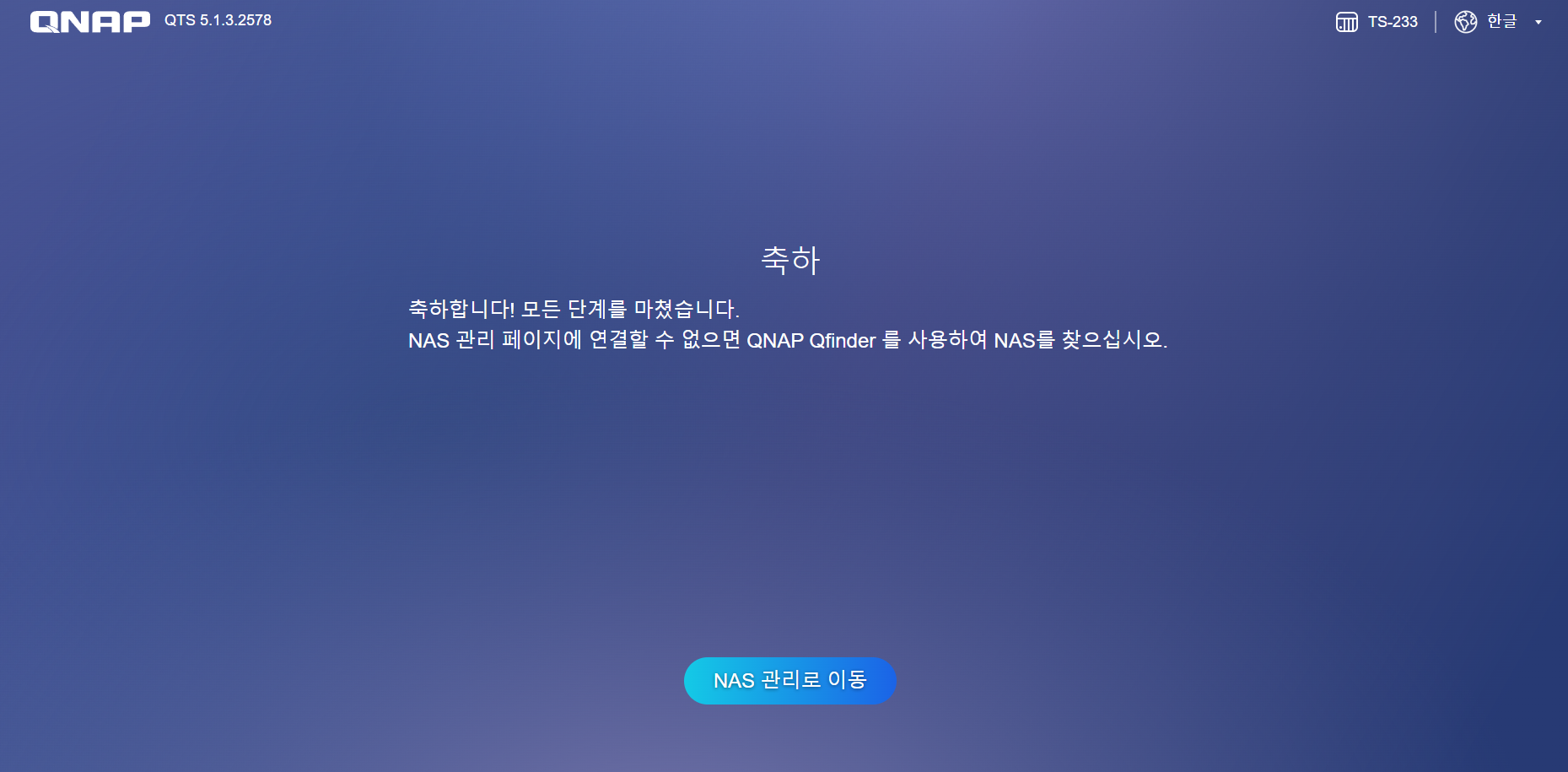 마지막으로 마침 버튼만 누르면 초기세팅을 완료하였습니다.