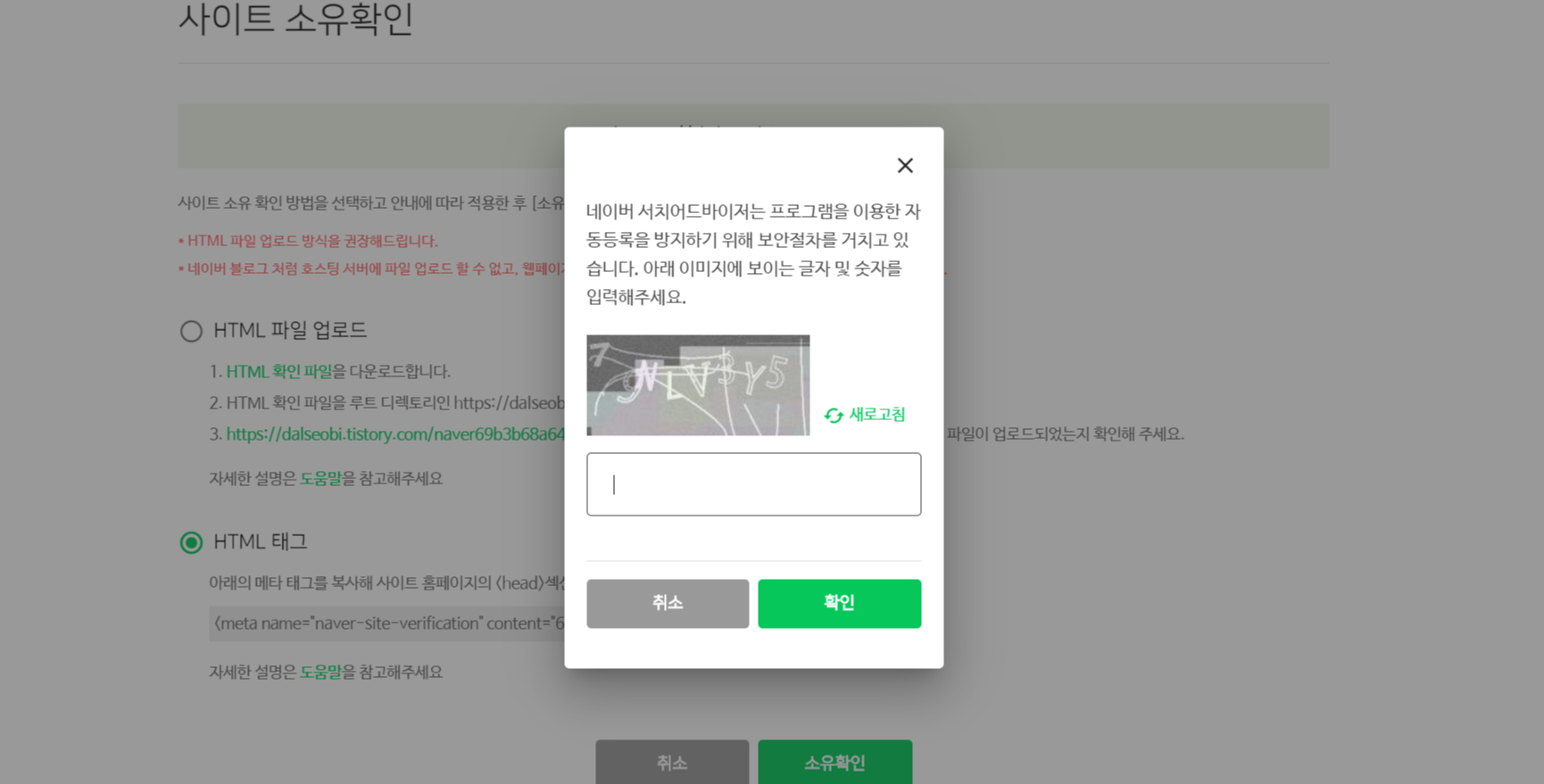 4. 다시 서치어드바이저 사이트로 넘어가서 소유확인 클릭