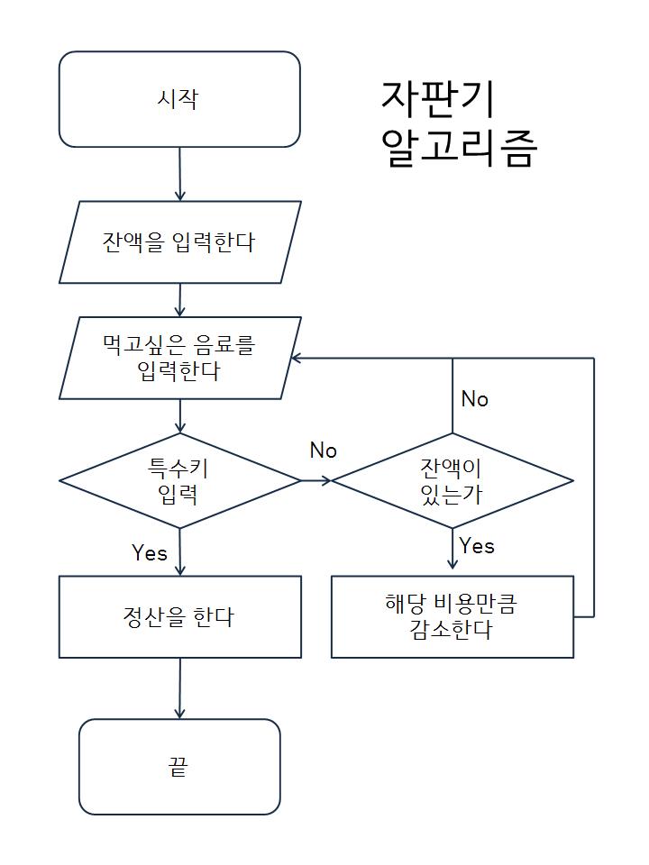 파이썬을 익숙하게 다루기 위하여 자판기 알고리즘을 표현해보았습니다. 여기서 파이썬의 다양한 특징을 보았습니다.