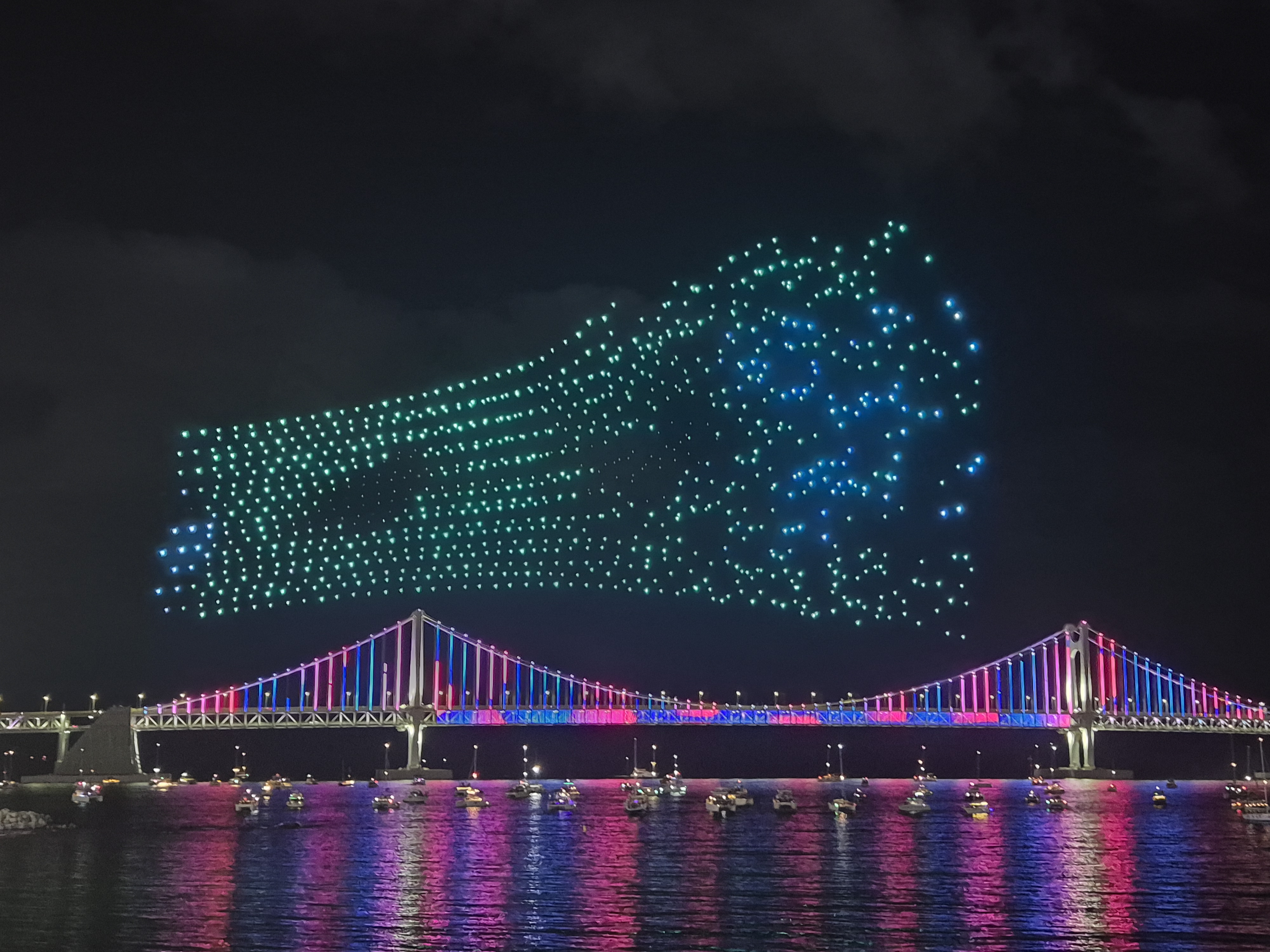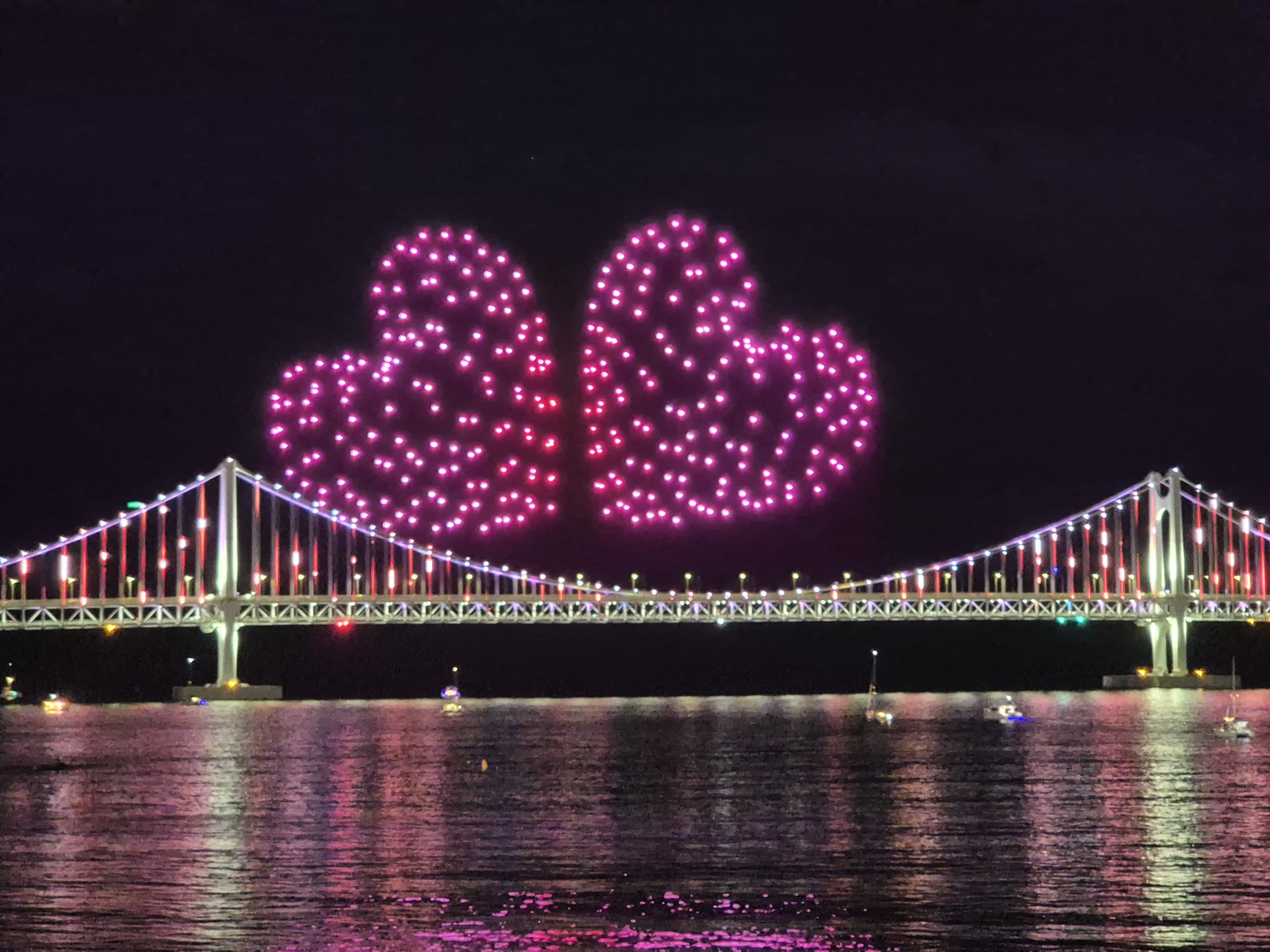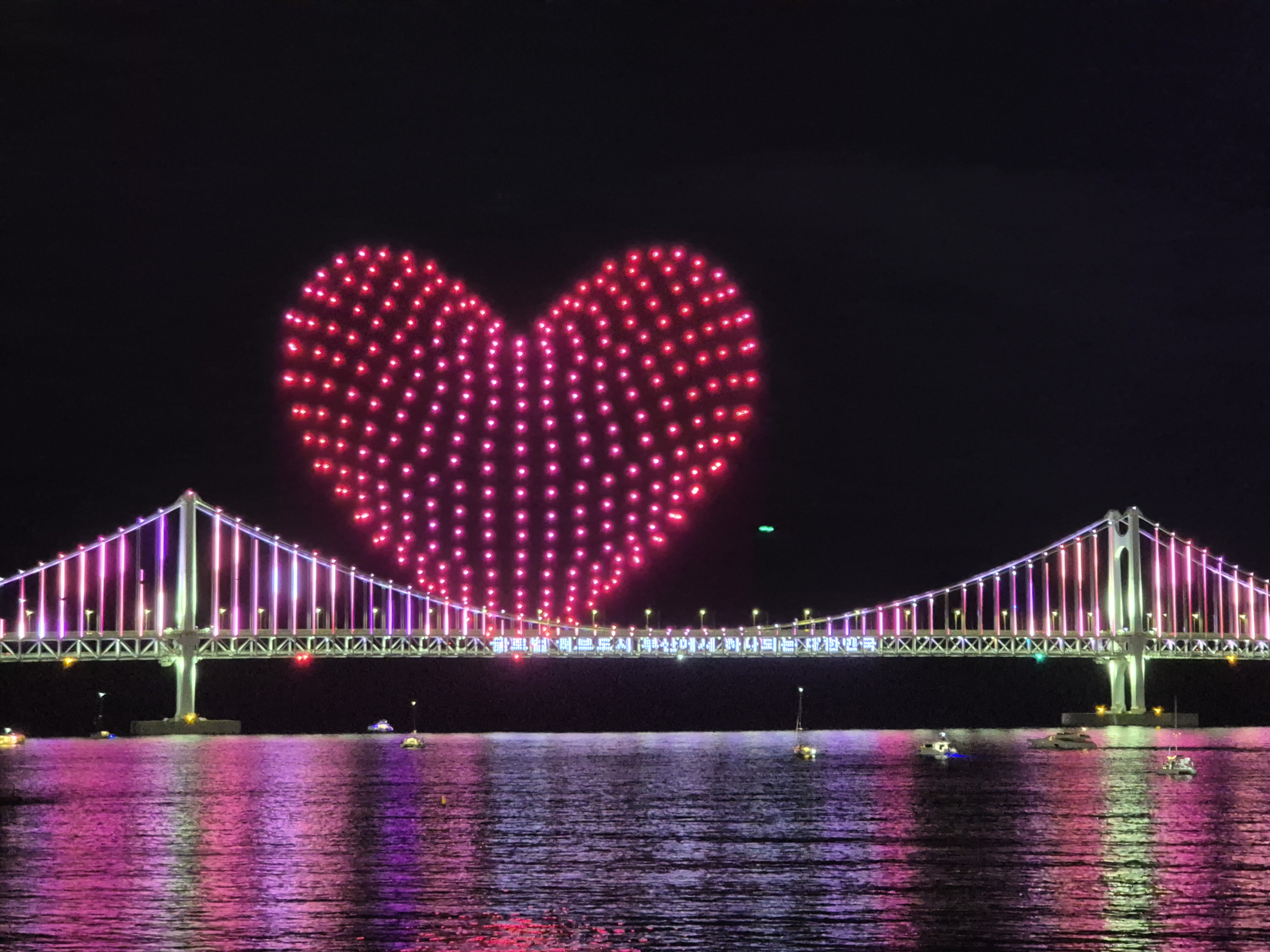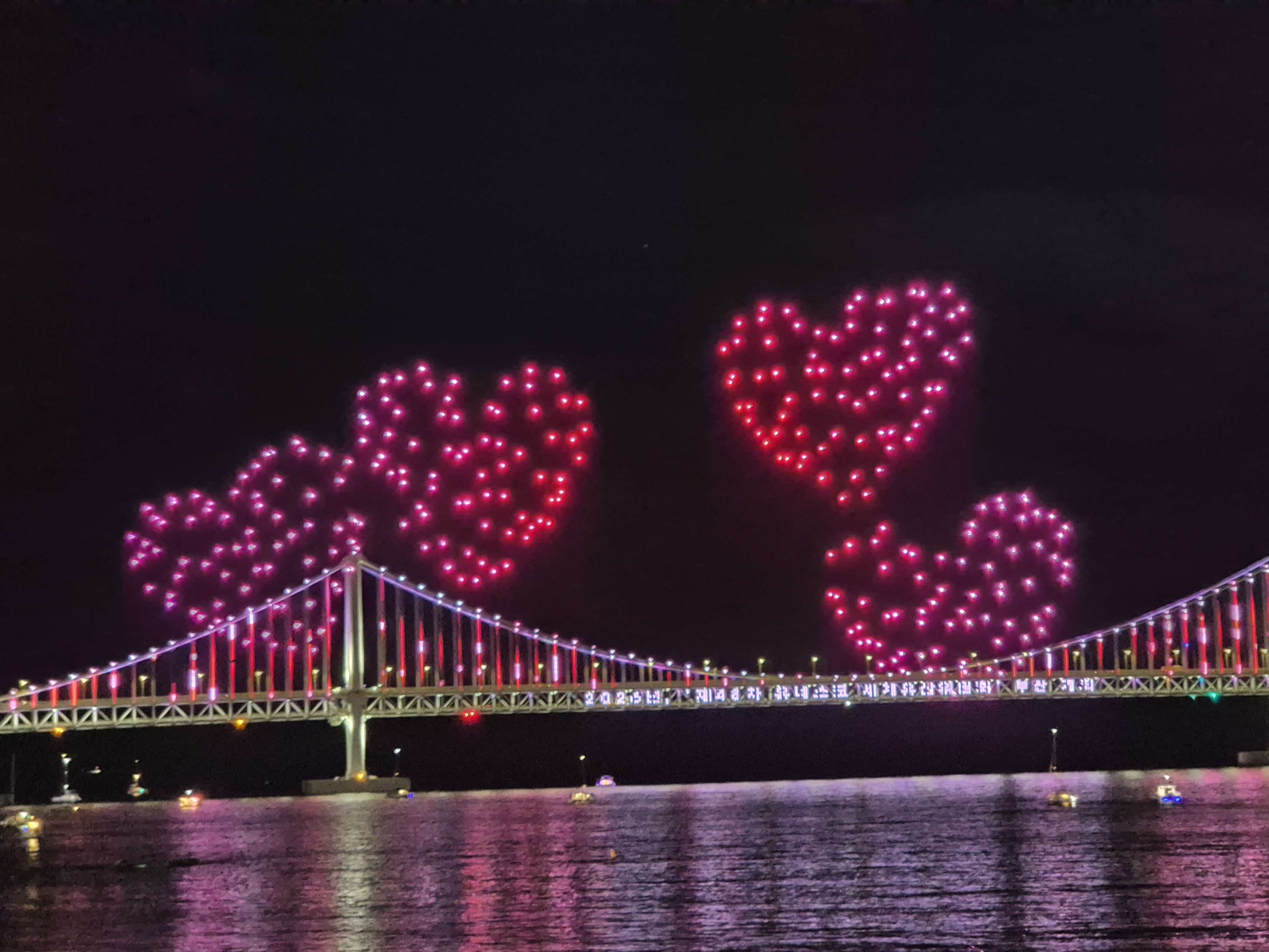 최근에 지인의 결혼식으로 부산을 갔다 왔습니다. 식이 끝나고 광안리 근처 카페 옥상에서 잠시 쉬고 있었는데, 사람들이 하나둘 모이더니 드론 라이트쇼가 시작되었습니다. 뜻밖의 구경거리를 만나서 즐거웠습니다.