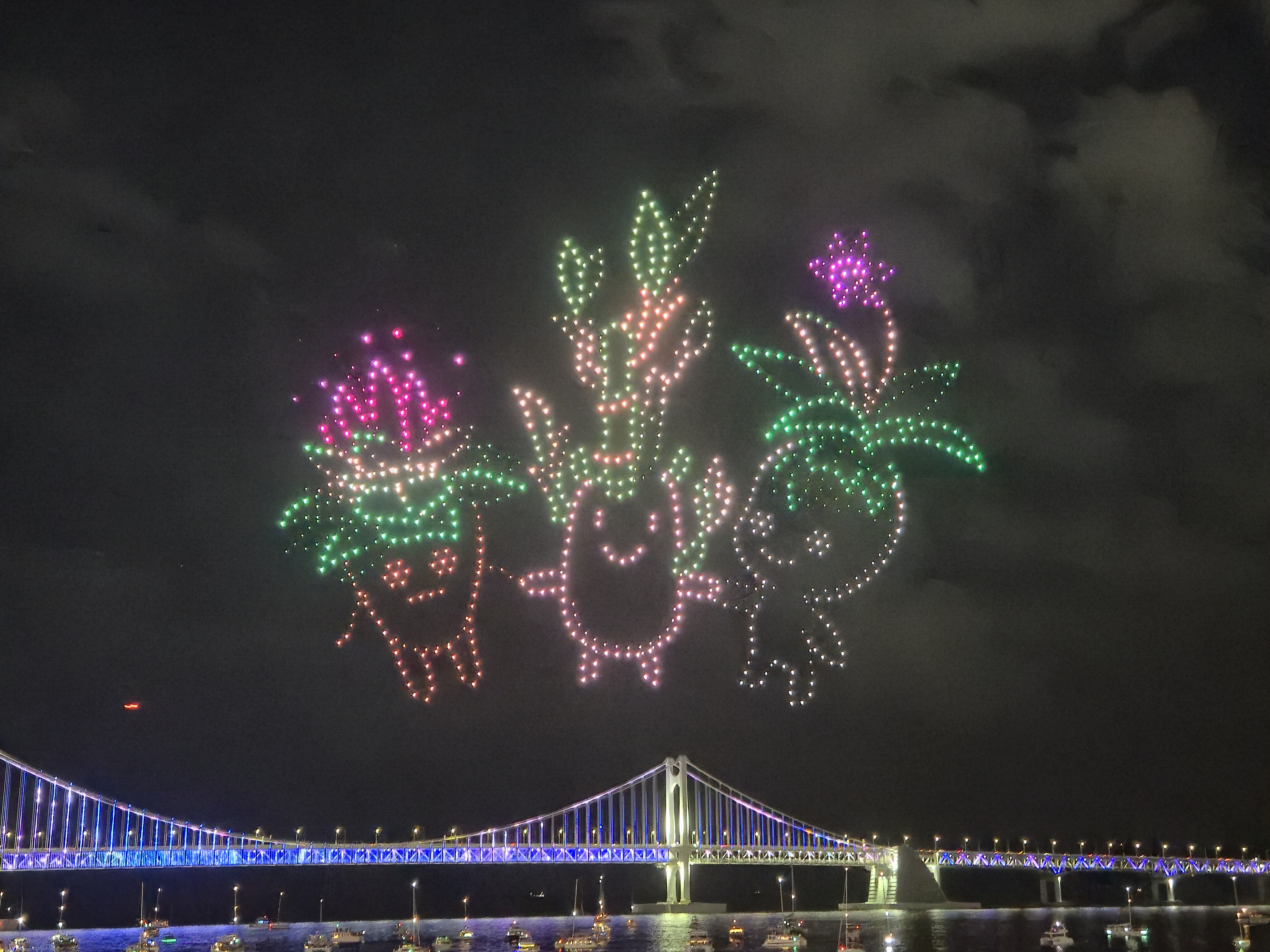 여기까지 본 공연을 마무리한 후 300대의 기체가 추가 공연이 있었습니다.