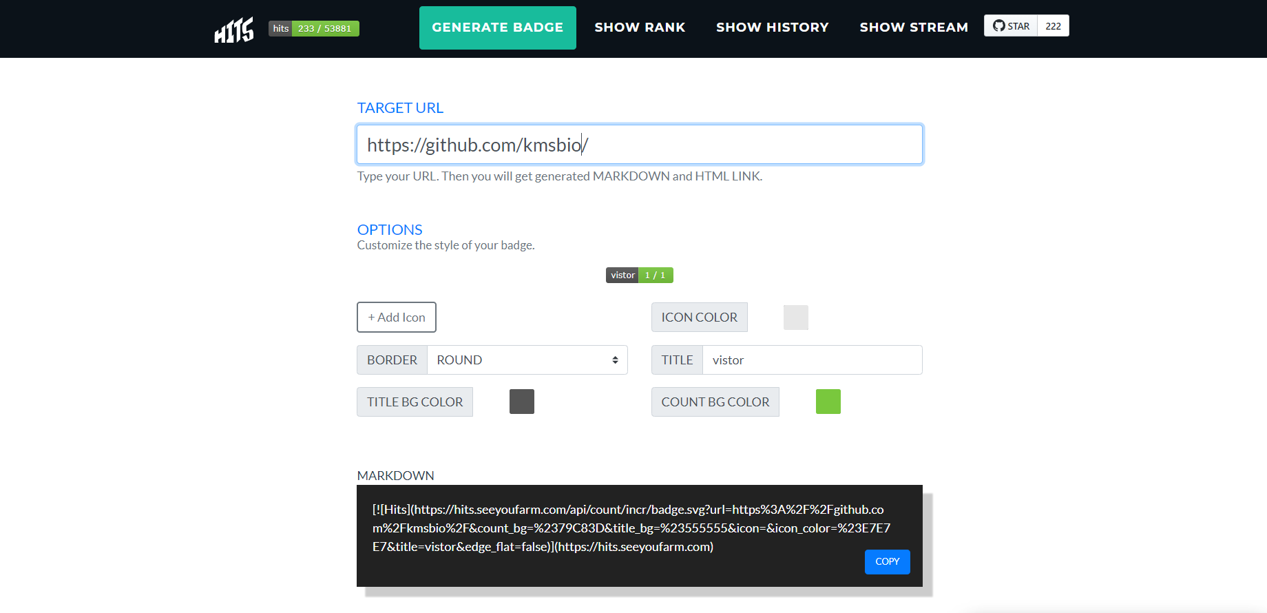 - TARGET URL : 배지를 달려고 하는 사이트를 적으면 됩니다. (필수)