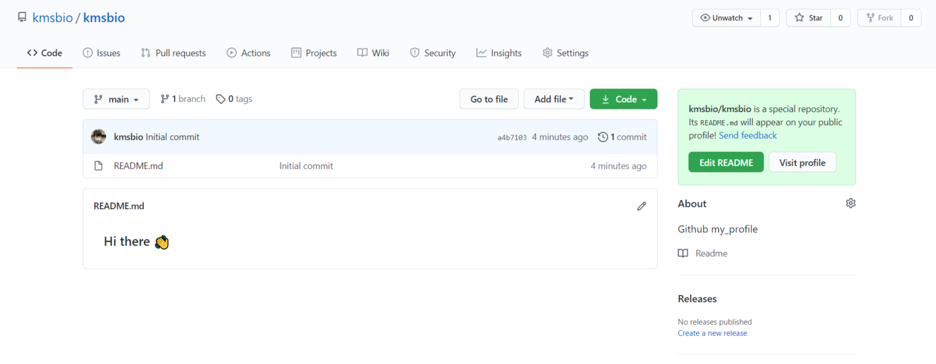 수정은 Edit README버튼을 누르면 수정할 수 있습니다.