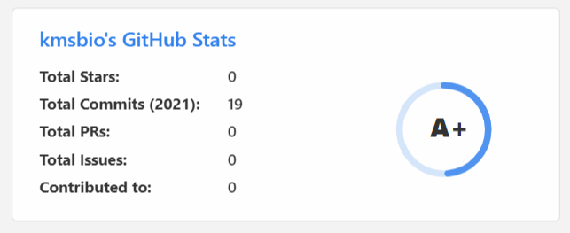 anuraghazra라는 개발자가 만든 오픈소스로 깃허브 스탯을 보여줍니다. 자신이 깃허브에서 어느 정도 활동하고 있는가, 그리고 자신이 주로 사용하는 언어는 무엇인지 다른 사람들에게 알려줄 수 있습니다. (스탯)