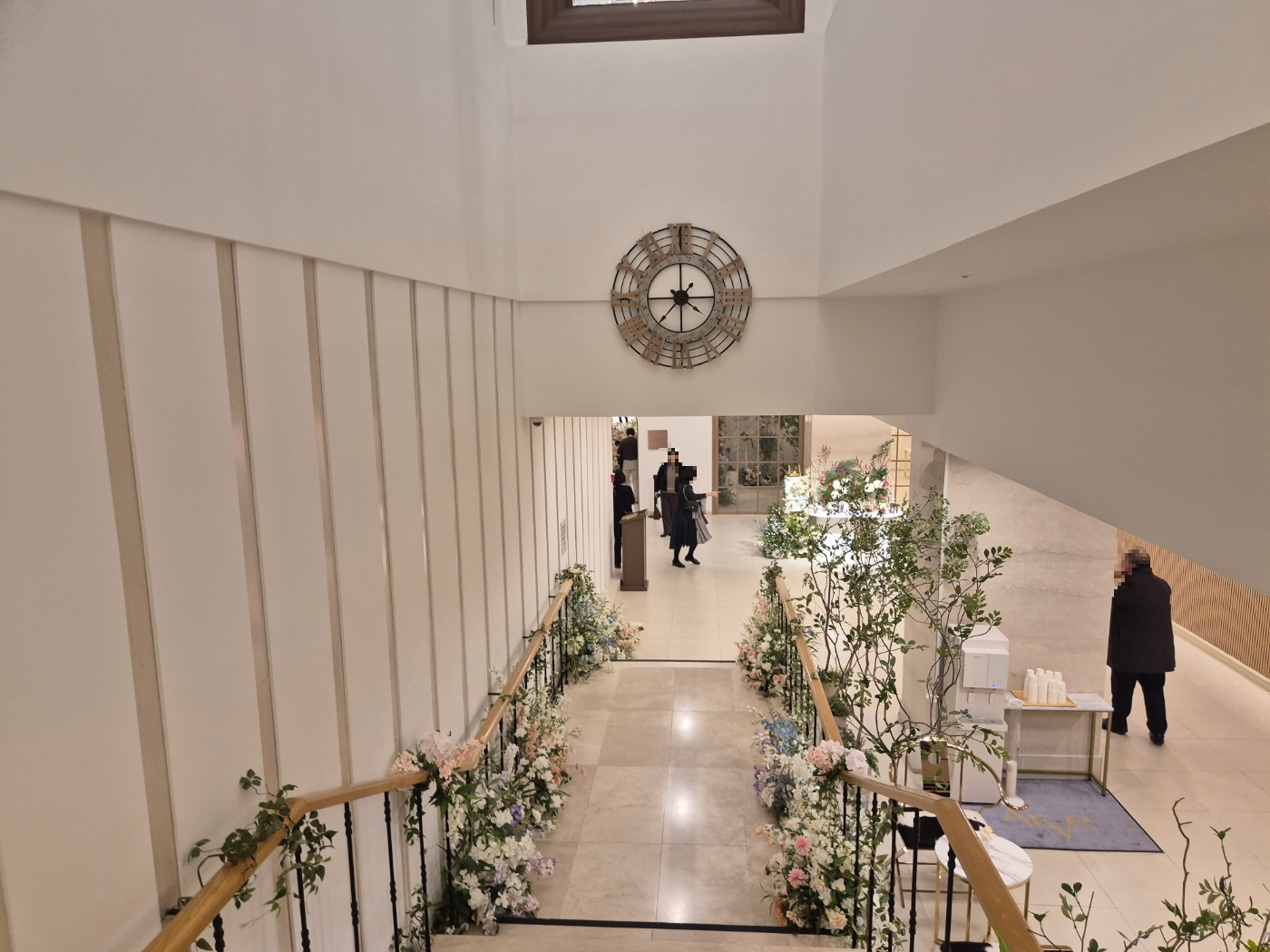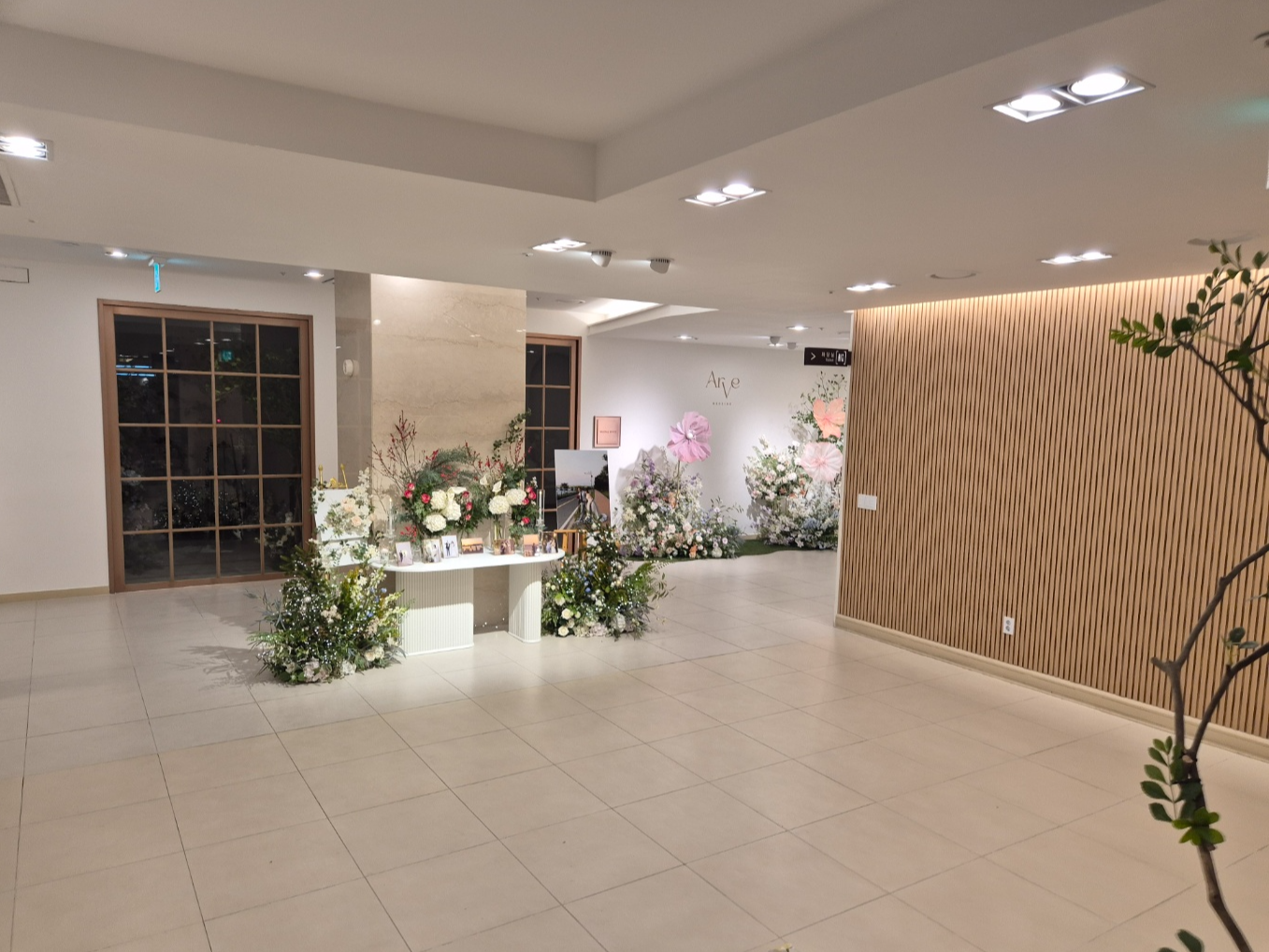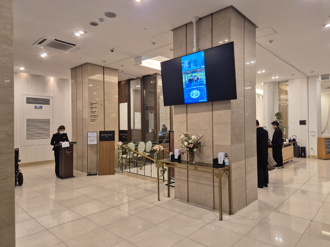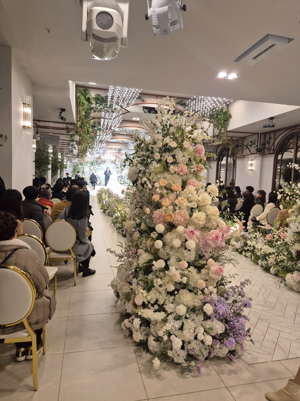 전체적으로 예식장의 동선은 직선으로 간단하게 되어있으며 주요 특징이라면 밝은 홀 + 꽃이 많다는 점입니다. 홀의 크기가 다소 작은 점이 아쉽지만, 공간감은 좁아 보이지 않았으며 넓었습니다.