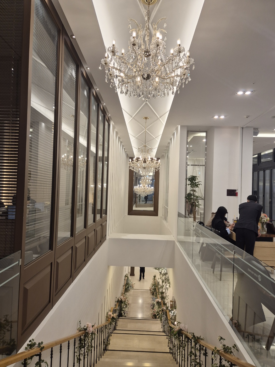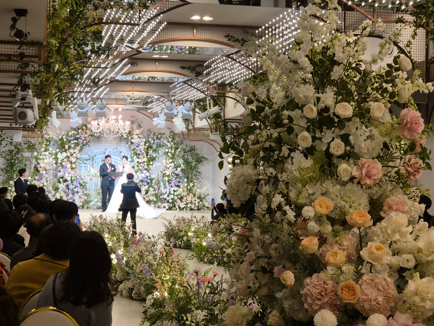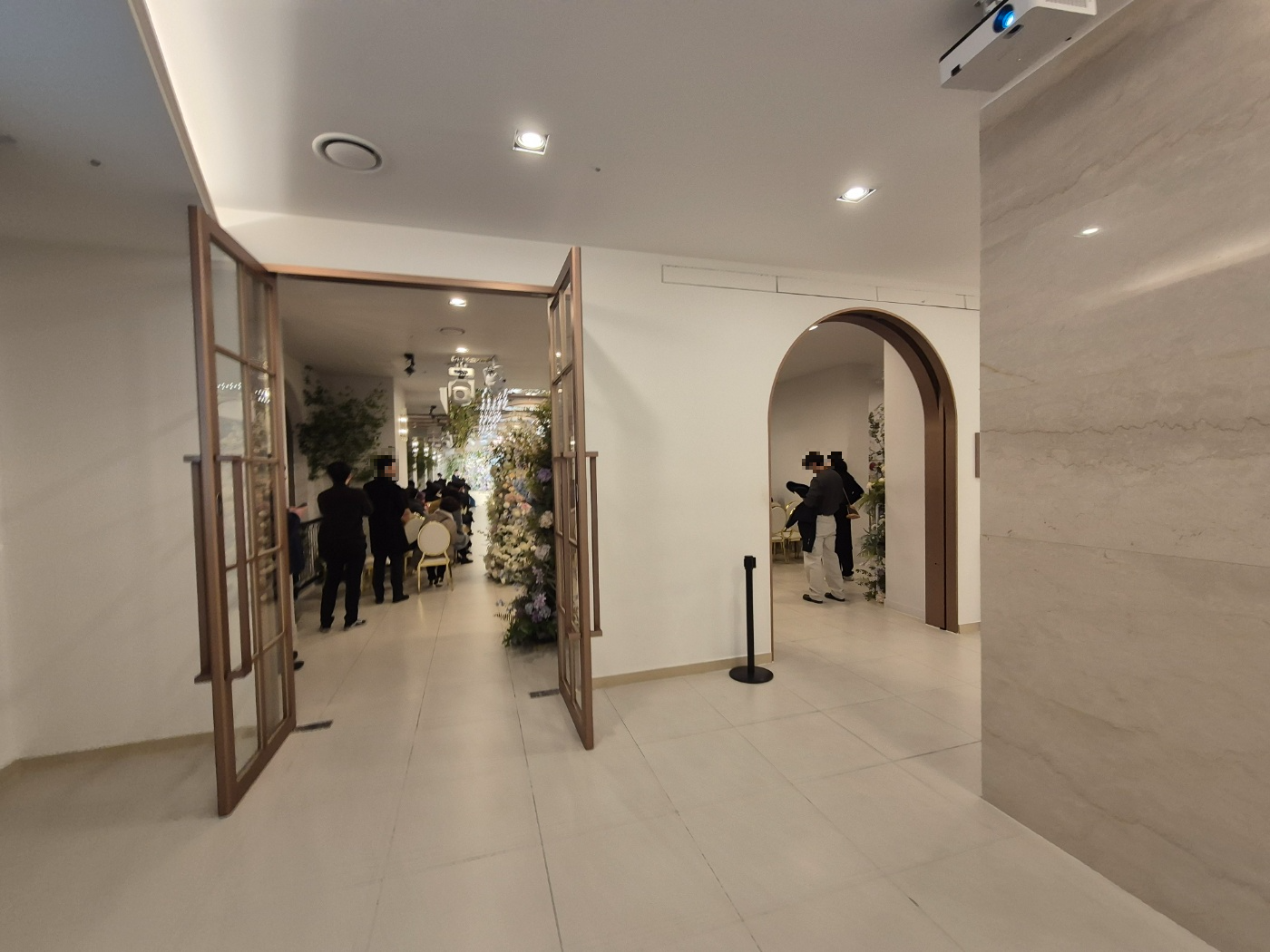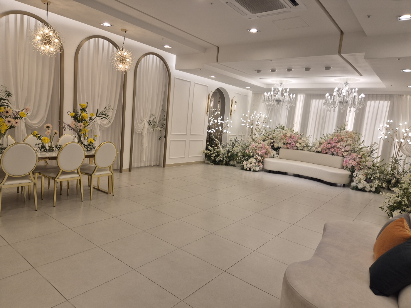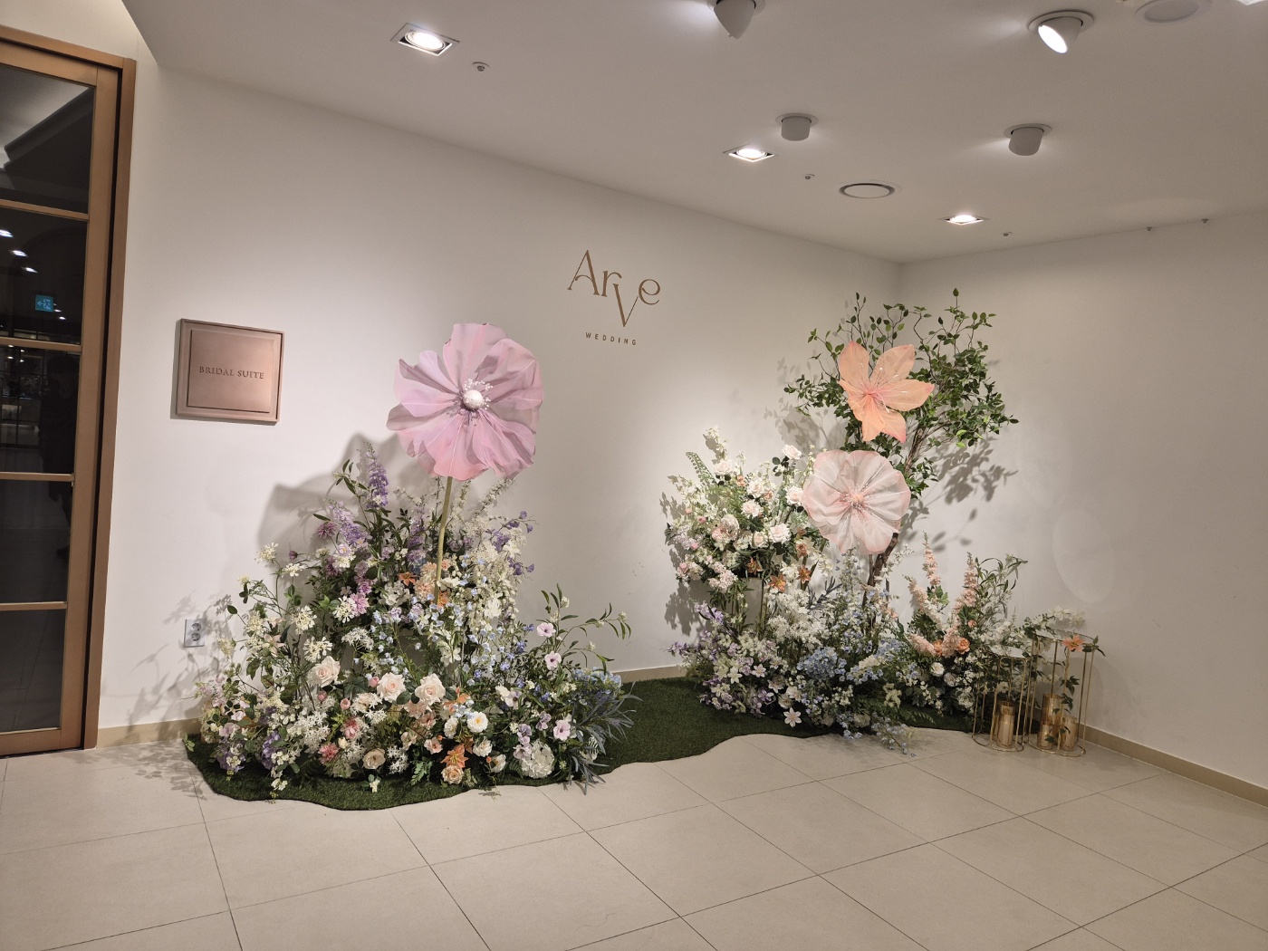 전체적으로 예식장의 동선은 직선으로 간단하게 되어있으며 주요 특징이라면 밝은 홀 + 꽃이 많다는 점입니다. 홀의 크기가 다소 작은 점이 아쉽지만, 공간감은 좁아 보이지 않았으며 넓었습니다.