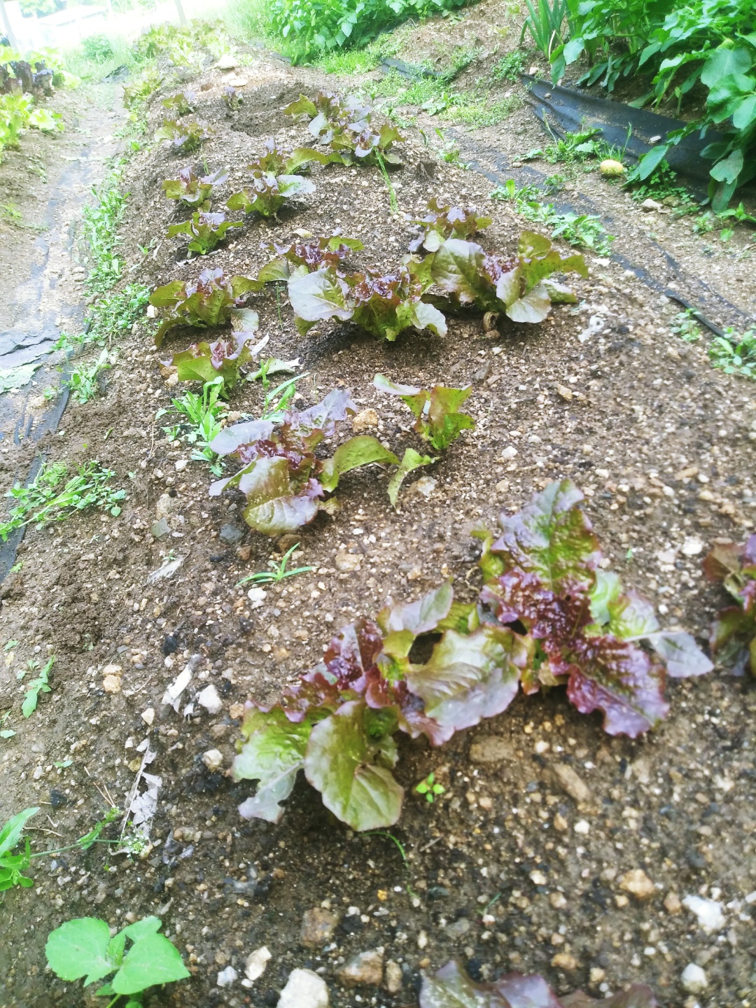 상추가 비교적 잘 자라고 있습니다. 잡초가 신경 쓰이는데 가서 처리할 예정입니다 ^^;;