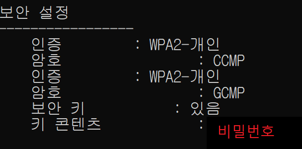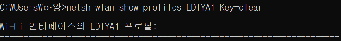netsh wlan show profiles <대상 와이파이> Key=clear