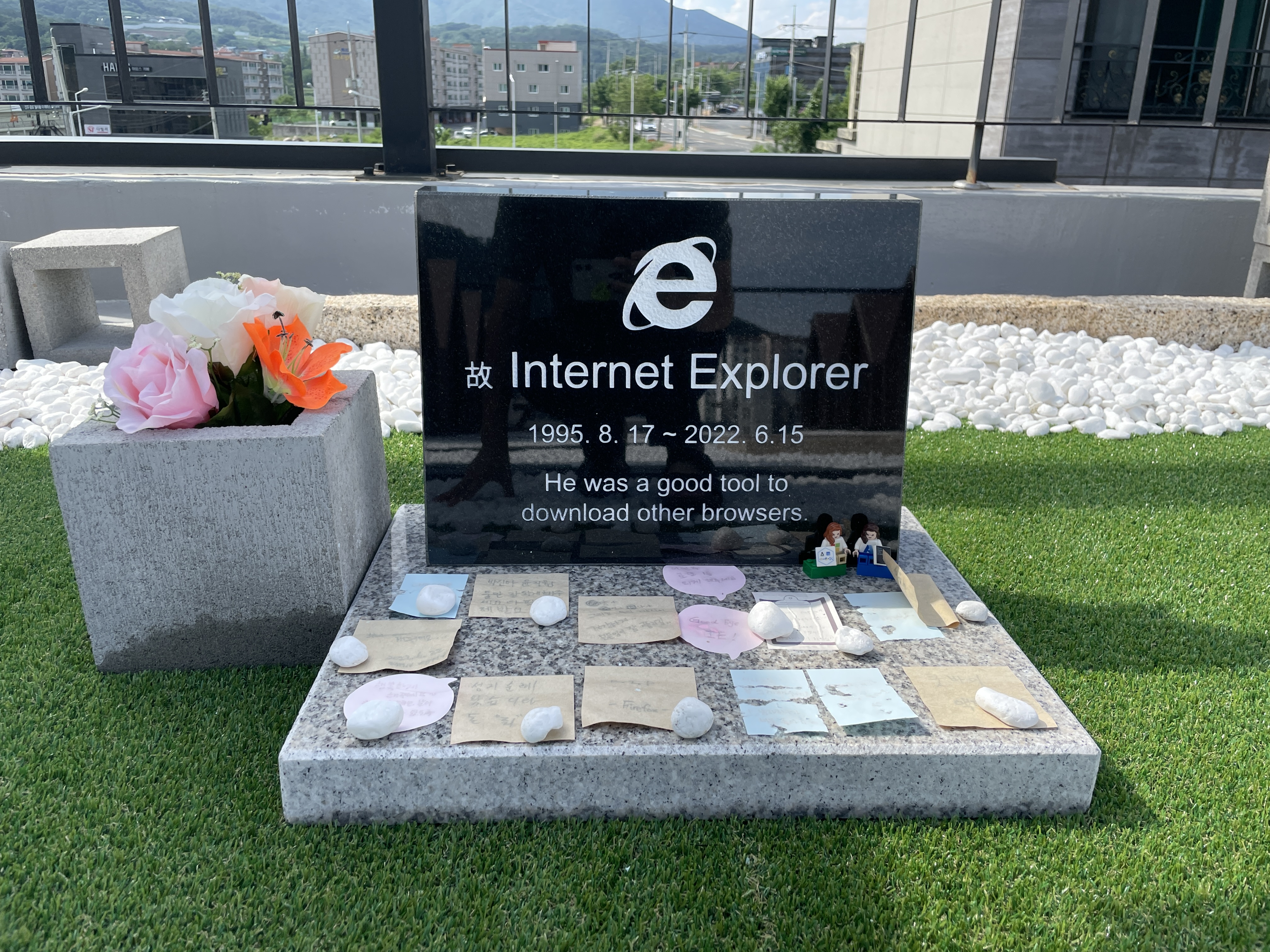 최근에 경주 충효동에 있는 카페를 방문하였습니다. 카페 옥상에는 인터넷 익스플로러(IE)의 서비스 종료를 기념한 묘비가 있습니다. 그리고 여기서 아래의 문구를 보았습니다.